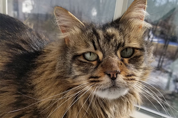 Ziggy was quite a character, with the most gorgeous eyes and a spirit shaped by his long and varied life. He spent over 12 years navigating the streets and various homes in New York City before finally finding his way to us in New Hampshire for his last five years. Here, he found joy in the simple pleasures—basking in the sun on the porch, curling up under his special “hidey hole” comforter, and engaging in playful chases.